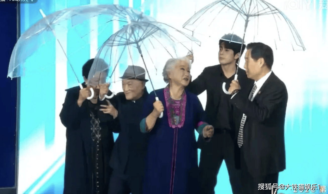 像牛犇、斯琴高娃,一个90岁,一个76岁,在这大雨哗啦啦下个不停的日子里也得上阵,且没有工作人员给予特殊照顾。