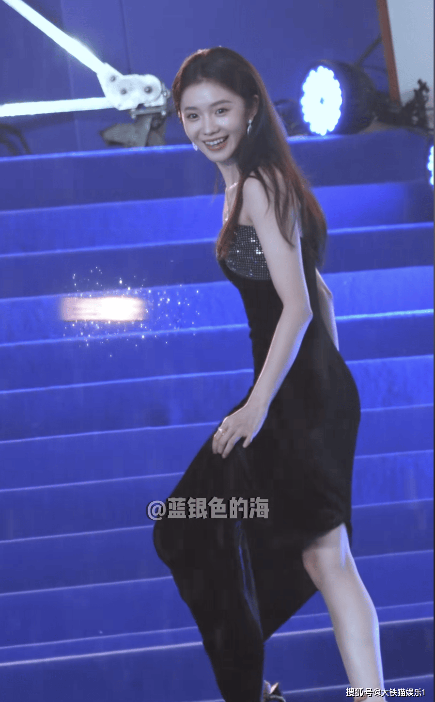 刘浩存穿着后开叉的礼服,下摆也没逃过被积水浸湿,不过小姑娘还挺敬业的,对着镜头依旧笑靥如花,该营业还得营业。