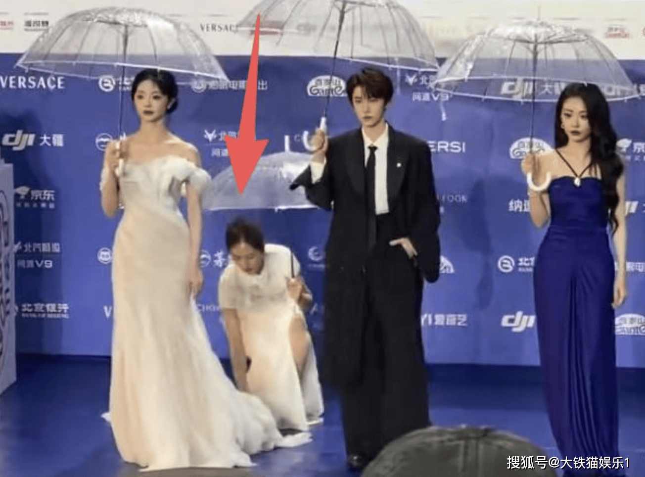热心网友搜了一下,去年北影节红毯好像也是下雨,但今年主办方好像并没有提前做预案,现场有很多细节都不尽如人意。