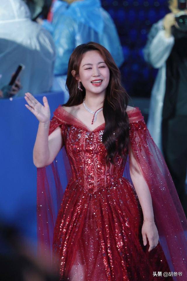 红毯上她穿了一条红色亮面长裙,面料被不少网友吐槽看上去像塑料,质感廉价,穿上还有点显老气,直接喊话造型师该换了。