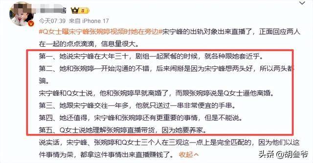 如果说经济上的抠门还只是让网友吐槽“太算计”,那Q女士曝出的情感欺骗细节,直接让宋宁峰的口碑彻底崩盘。