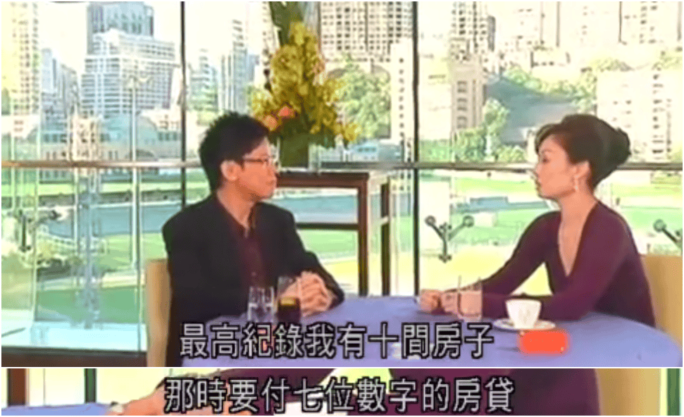 她是香港明星中较早炒房的一批,最多时手中有10套房,每月还贷就要上百万。1995年,房价下跌20%,随后又迅速涨回原本的价格。