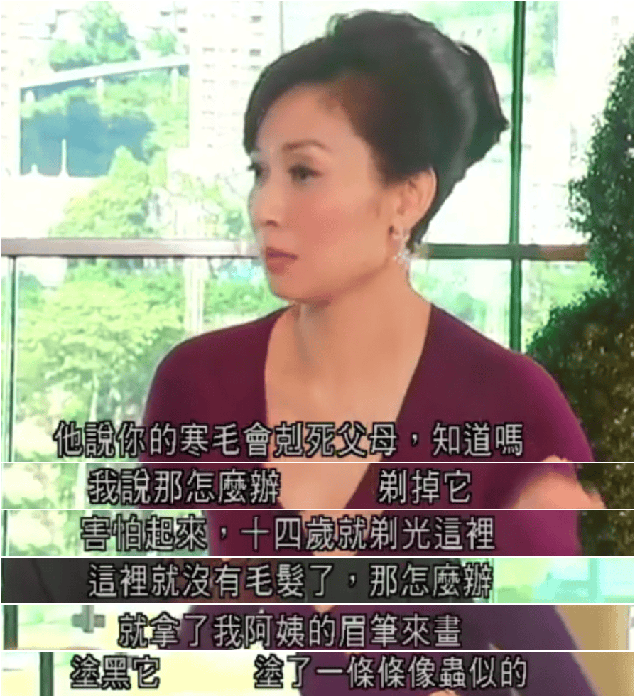 那时候只有14岁的邝美云,十分害怕再失去父亲。听说剃掉额头的汗毛,可以防止克死父亲,就真的照做。结果因为太丑,每天她还要用眉笔画上假汗毛。