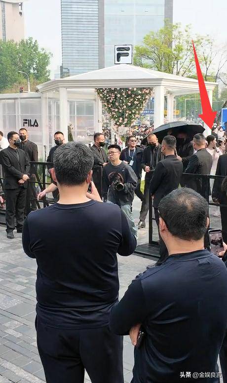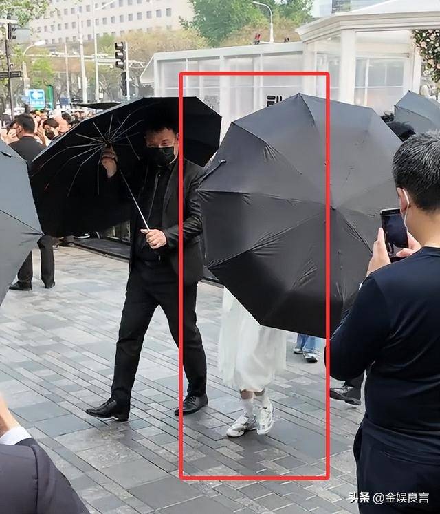 当天她身边的保镖就站了整整一排,个个身材高大、神情严肃,全程举着黑色的大伞紧紧挡在她身边,不仅要遮挡阳光,更主要的是挡住路人的镜头,不让大家随意拍摄无修画面。