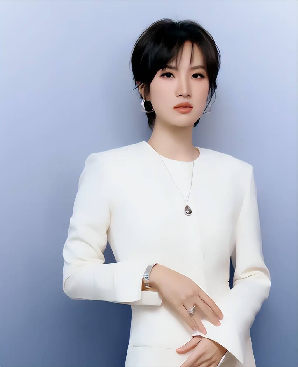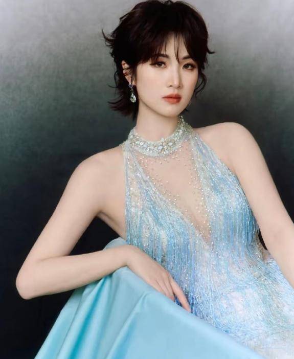 红毯上张艺谋带着剧组压轴出场,姚安娜就安安静静站在周深身边,淡蓝露背长裙,主动缩在角落,半分风头都不抢!