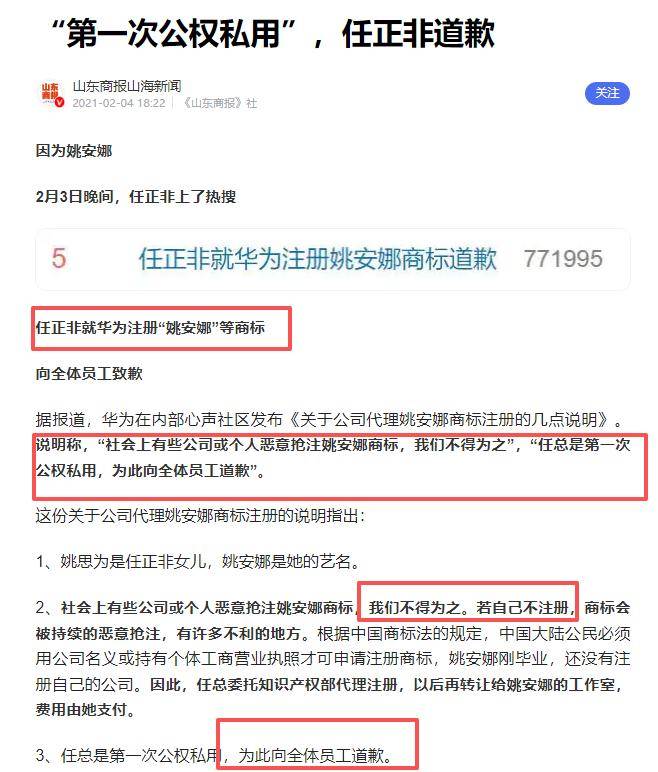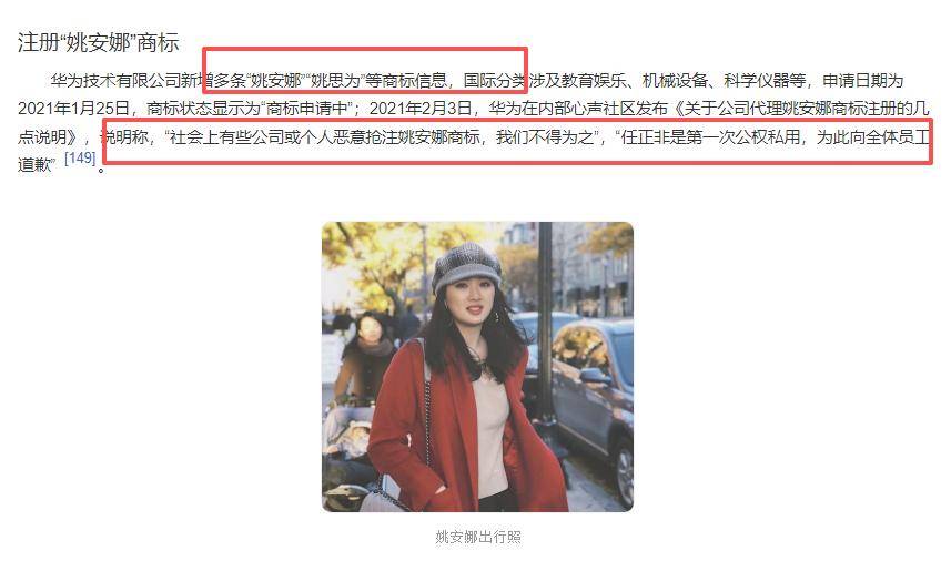 有人恶意抢注姚安娜商标,任正非破例动用华为资源护女儿,还向员工道歉,所有商标费用,全让姚安娜自己承担!