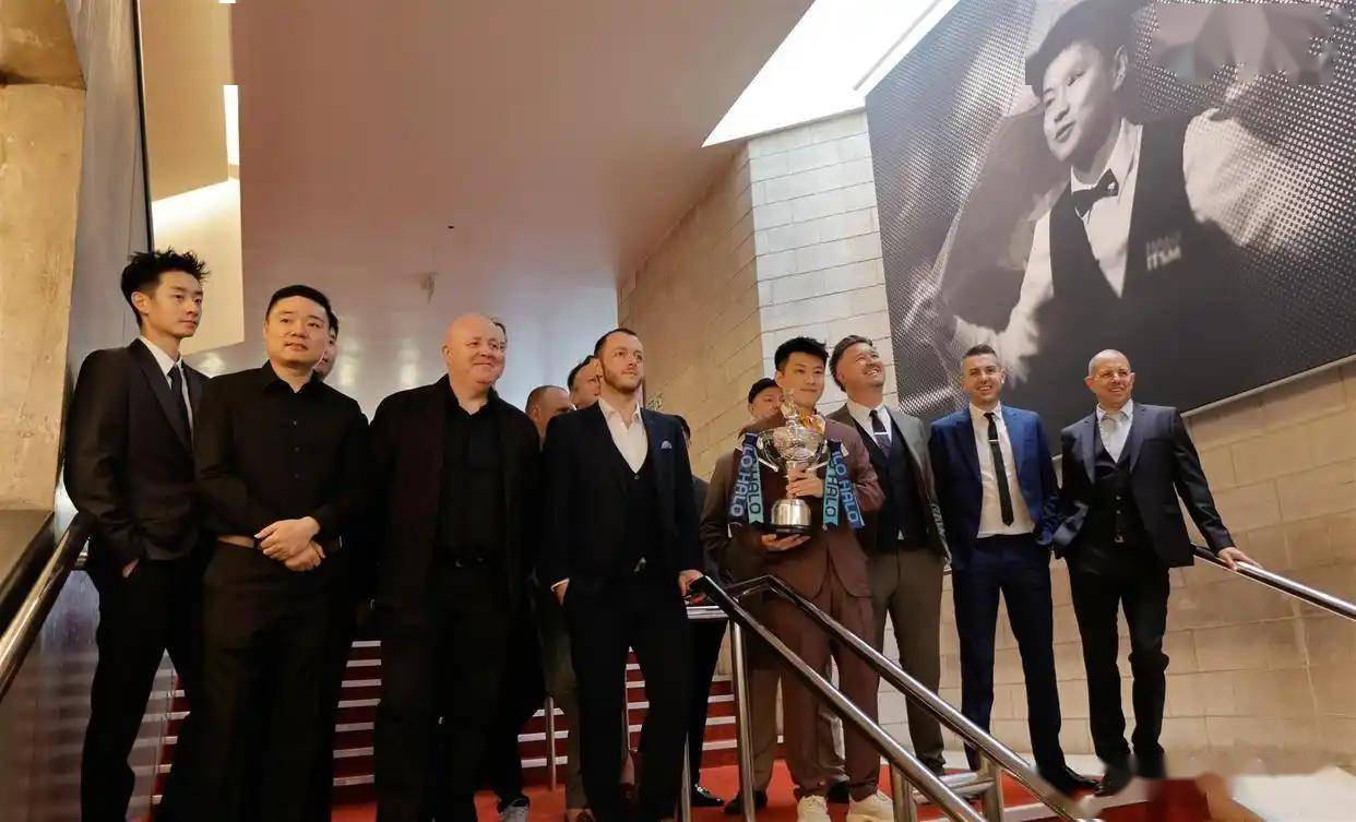 不仅有“巫师”希金斯、“小钢炮”马克·艾伦、中国一哥丁俊晖等老熟人稳坐前排,后排还站着肖国栋、吴宜泽、斯佳辉等中国新生代力量。但在所有人的目光中,中间的焦点只有一个,那就是捧着世锦赛冠军奖杯的赵心童。