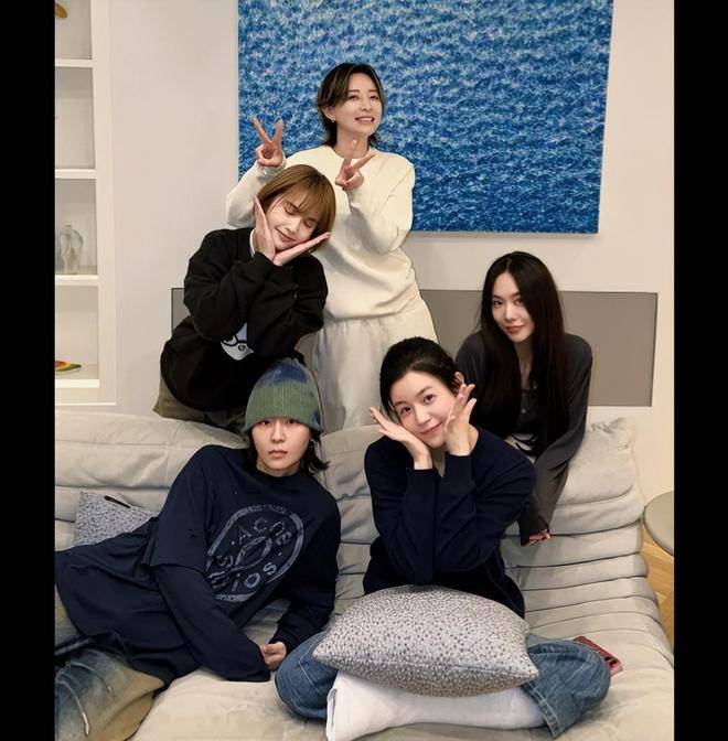 近日,陈妍希在社交平台上分享了一组与好友杨丞琳、周笔畅、王霏霏、李斯丹妮的聚会合照,并配文写道:姐妹欢聚,很是开心呀!因为腿部受伤,她选择在家静养,而好友们特意上门探望。照片中,陈妍希与姐妹们笑容灿烂,同框的画面充满温暖与欢乐。