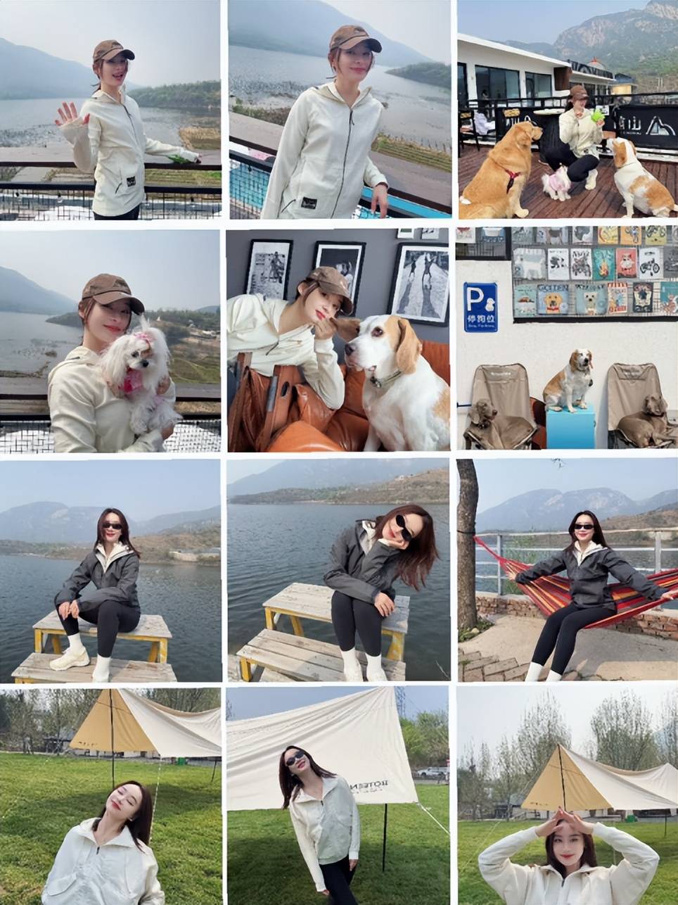 最近,她就晒出了带着狗狗去户外玩耍的视频。视频开头是十二张照片拼接而成的画面,她用特效做了流畅的画面切换,视频里的她换了好几套阳光休闲的穿搭,状态看着十分不错。