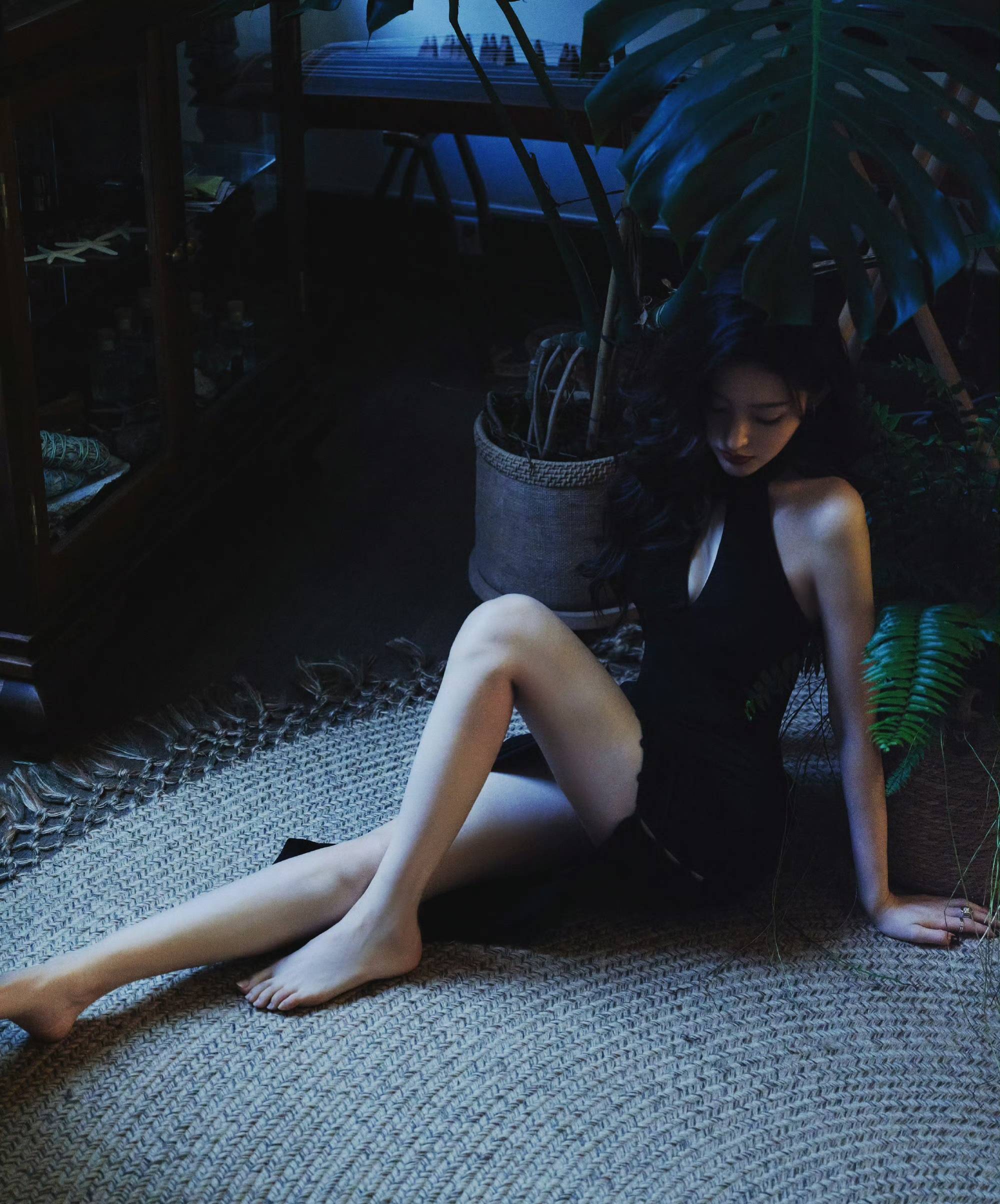 深黑色的创意裁剪吊带旗袍,与张天爱的冷白皮形成强烈反差,一双白到反光的美腿搭配上红唇更是看起来柔美十足,而娇俏的小脚更是有着别样的风情,