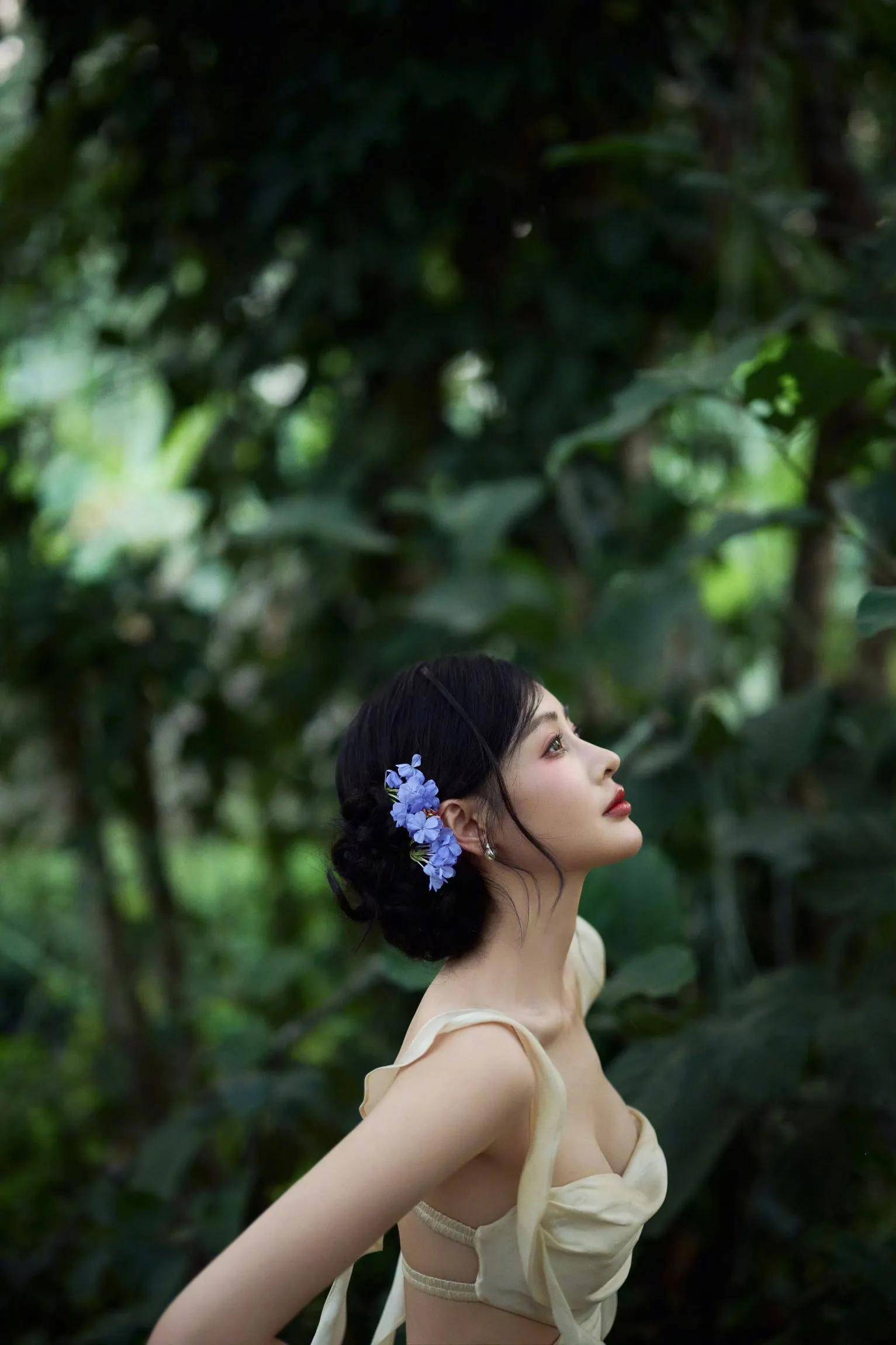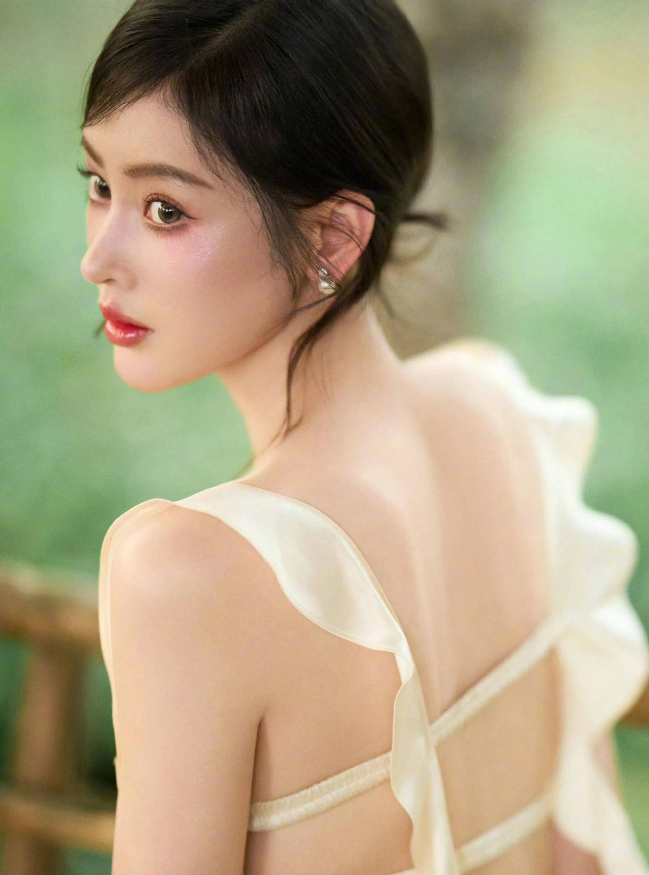 带有傣妹特色的发型和头花更多了一份异域风情,宽松吊带的裹胸晚礼服,映衬出张天爱凹凸有致的完美曲线,而后背的大胆设计更是体现张天爱的女人味,