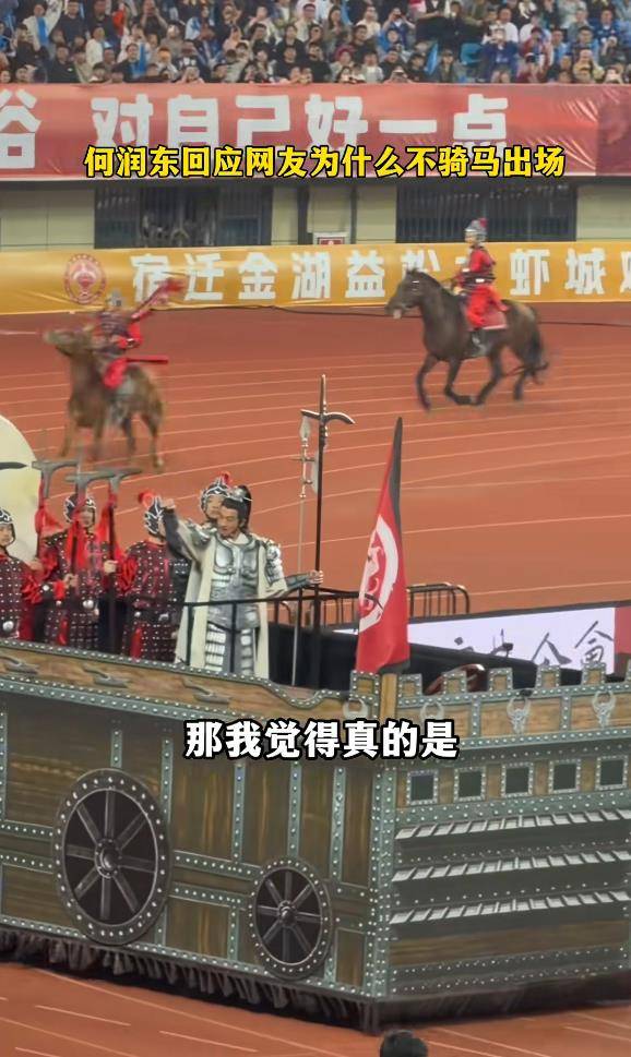 除了个人的考量,客观安全因素同样关键。主办方随后补充说明,容纳三万人的嘈杂球场环境复杂,缺乏封闭的专业马道,马匹极易因巨大声浪和突发情况受惊失控,风险极高。最终,各方协商后,将方案调整为驾战车亮相,并辅以铠甲马队营造气势,在确保绝对安全的前提下,最大程度还原了楚霸王的威武场景。