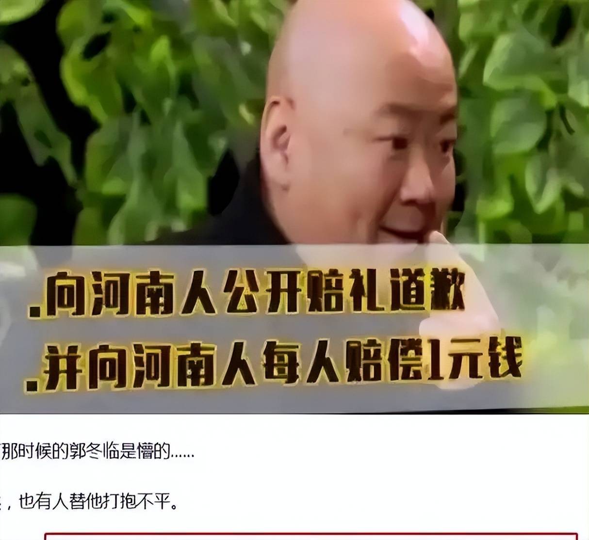 河南籍律师起诉,要赔一亿精神损失,郭冬临当场就慌了,赶紧发声明道歉。