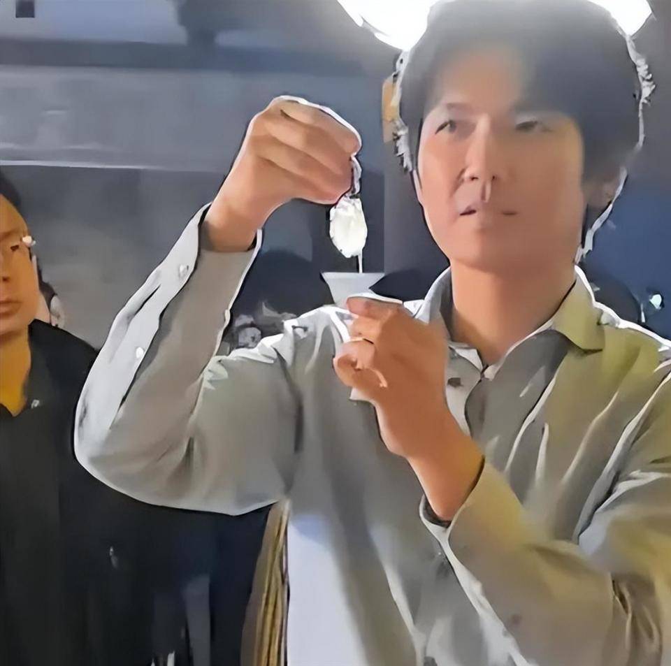 最扎眼的就是那条裤子!松松垮垮快掉到胯骨,他只能边走边往上提。活脱脱就是楼下遛弯的普通中年大叔!