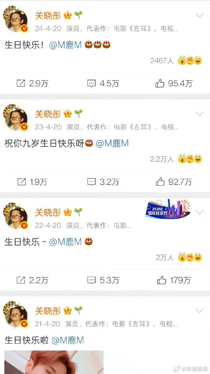 要知道,自2017年两人以一句“大家好,给大家介绍一下”官宣恋情,震动整个互联网以来,每年的4月20日就成了粉丝们围观“甜蜜暴击”的固定节目。关晓彤或卡在零点,或选用特殊纪念数字,准时为鹿晗庆生,这份坚持曾被视作内娱情侣的“模范操作”。