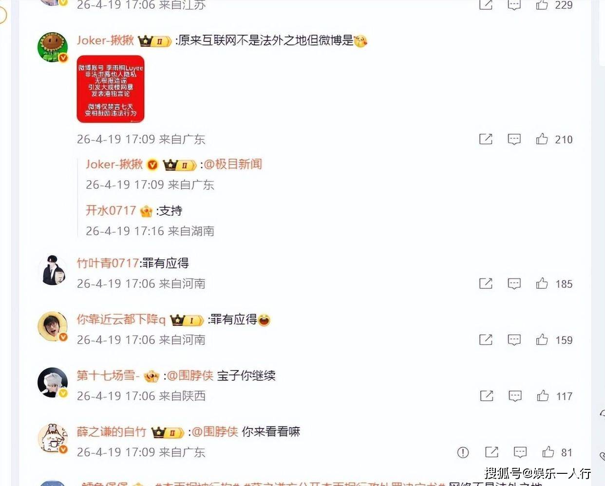 网友看到行政拘留的消息后,普遍表示支持法律判决。评论区出现“互联网不是法外之地”的表述,认为每个人都应遵守法律底线。