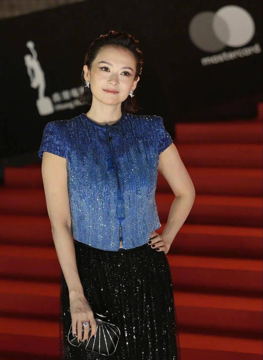 金像奖当晚,章子怡压轴亮相红毯,短发造型惊艳全场,状态极佳。她全程保持职业微笑,与各路嘉宾寒暄,坐足全场,直到影后揭晓。