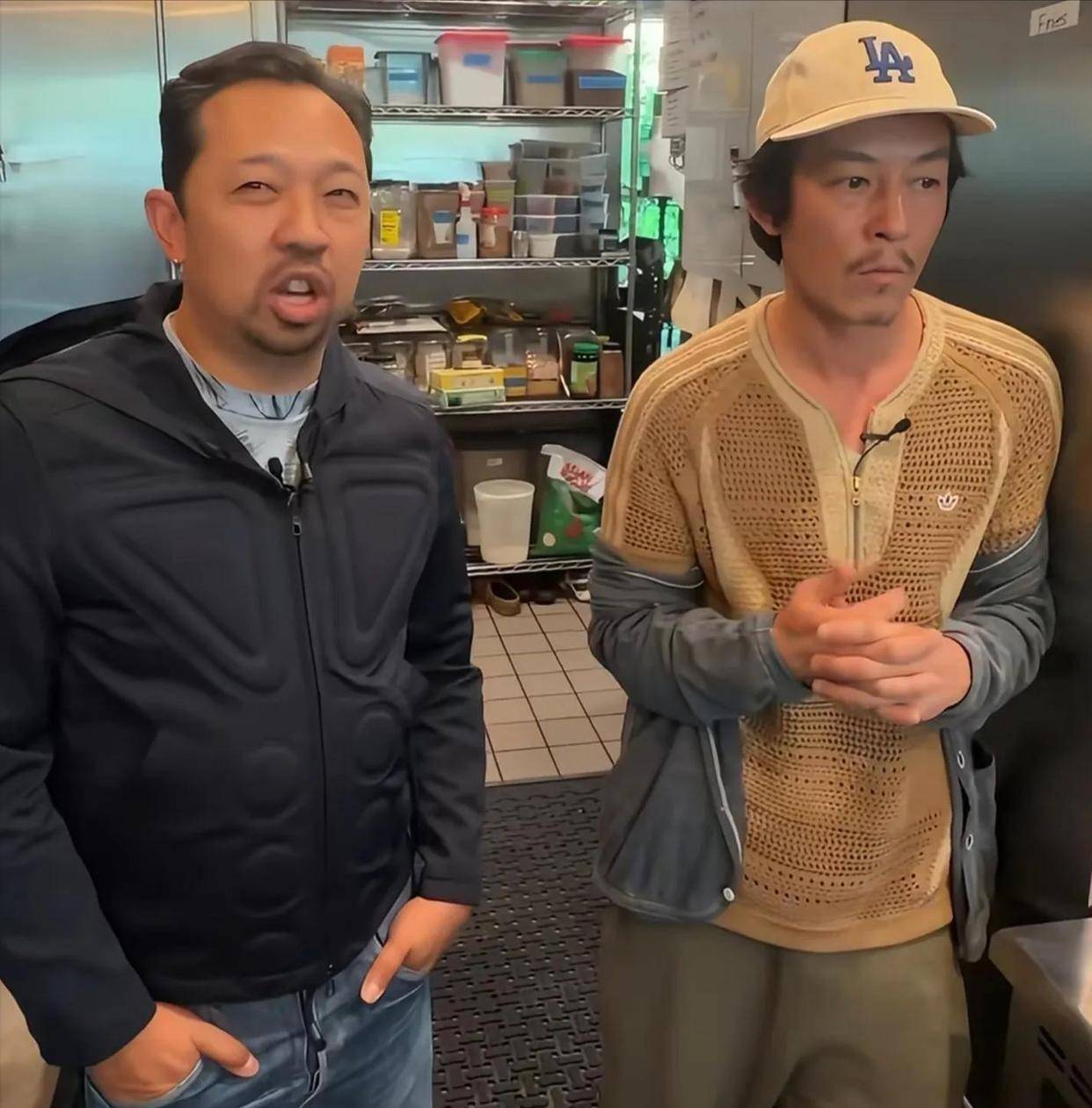 2026年4月16日,洛杉矶一家叫Chifa LA的中餐厅里,陈冠希被网友用手机镜头逮了个正着。他头上扣着顶洛杉矶道奇队的棒球帽,帽檐边支棱出没打理过的头发,身上是旧卫衣和破洞牛仔裤