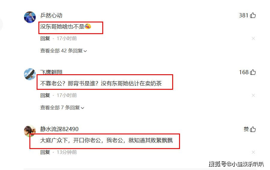 评论区瞬间分裂成两派。一派说:“长得漂亮是优势,活得漂亮是本事,她做到了。”另一派直接开怼:“不靠老公?那背书是谁?没东哥她估计在卖奶茶。”“没东哥她啥也不是。”