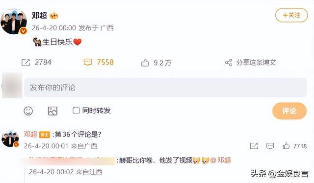 鹿晗36岁生日,有人熬夜卡点送祝福,有人连一句公开问候都没有,内娱这点人情冷暖,全在4月20日这天摆得明明白白。凌晨零点刚过邓超就准时上线,就像过去11年那样,没多余的花哨文案,就