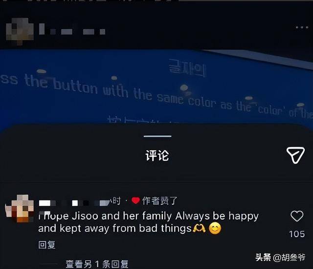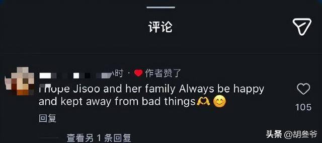 说完之后,她还专门点赞了粉丝希望Jisoo和她的家人永远快乐这条评论。