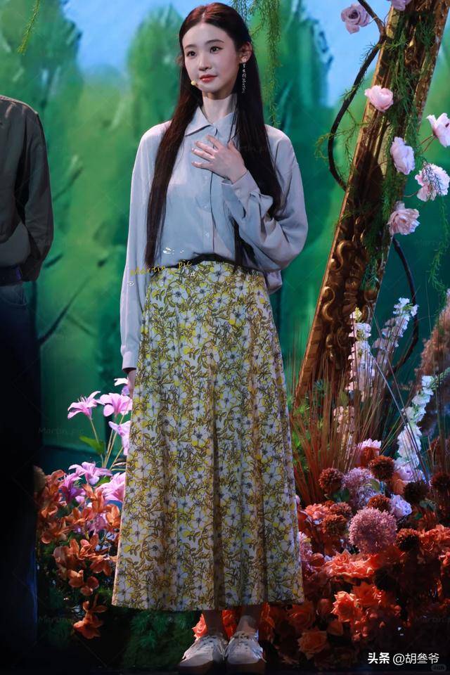 这种清新挂的颜值,不仅扛住了活动现场的死亡灯光,就连路人原相机直出的照片,都找不到明显瑕疵,难怪被网友称为三人中的“气质天花板”。