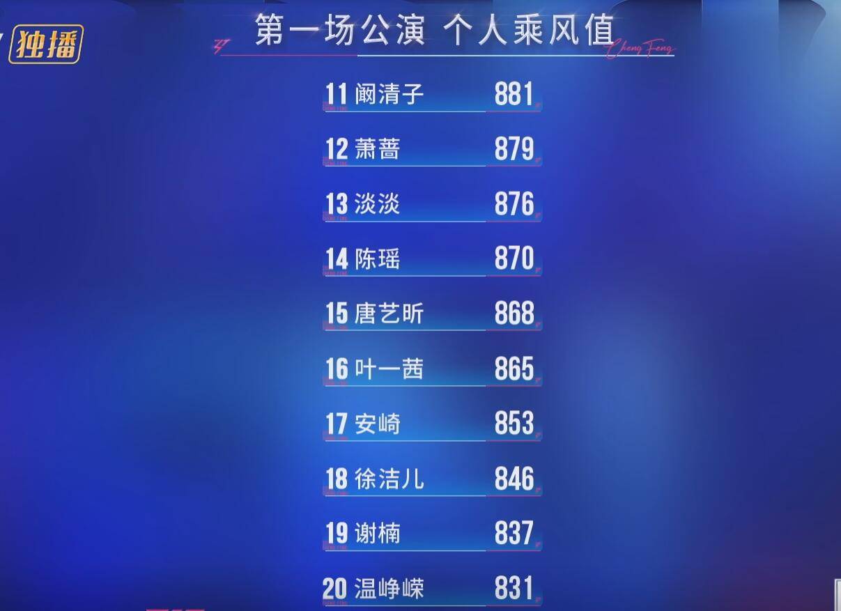 我觉得只要是在前十名,这个成绩就是不错的,因为这是可以最终稳定成团的。
