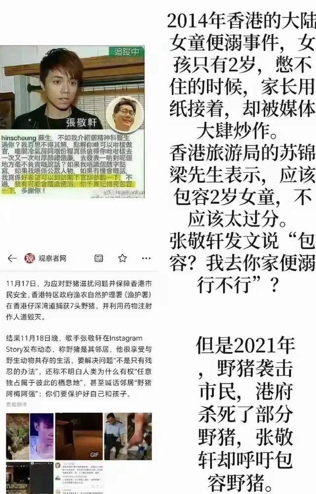 这其实不是张敬轩一个人的情况,这几年许多香港明星到内地参加活动,一谈到政治话题就容易出问题。