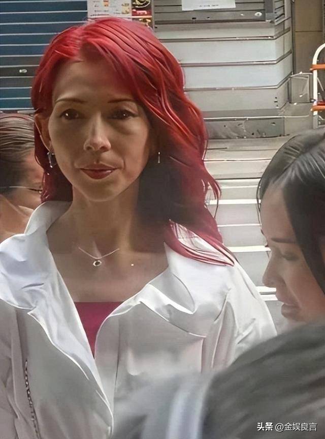 就在前几个月,还有网友在街头偶遇过她,当时她染着一头亮眼的红发,穿搭时尚又飒爽,妆容精致,整个人状态在线,自带光芒,完全看不出已经年过五十,活脱脱一个“靓妹”模样。