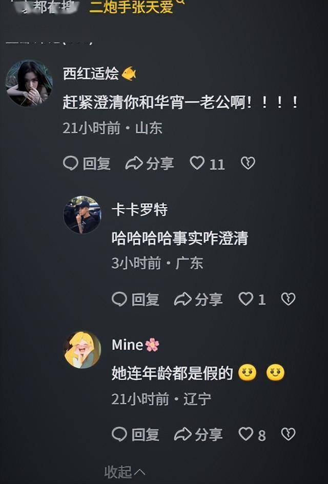 传闻在发酵,张天爱却没回应,反而在这众多评论中挑出其中一条和绯闻不相干的,深夜进行了回复。