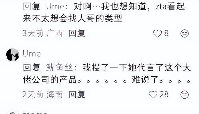 评论区也有浙江IP的博主爆料,张天爱有另外的大佬,网上这些传闻是小看张禹帅对舆论的重视程度了。