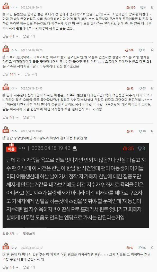 理性声音开始汇聚,试图将偏离的焦点拉回正轨。有网友总结道:“将矛头转向家人难道不是偏离重点吗?这本质是韩国男性典型问题。仅因其妹妹是偶像,所有箭矢就转向她,反而分散了对真正加害者的追责。Jisoo不应因血缘关系受谴责,重点应始终放在支持受害者与严惩加害者上。若演变成‘等等,他妹妹是Jisoo?快去攻击她!’的闹剧,对受害者毫无助益。”