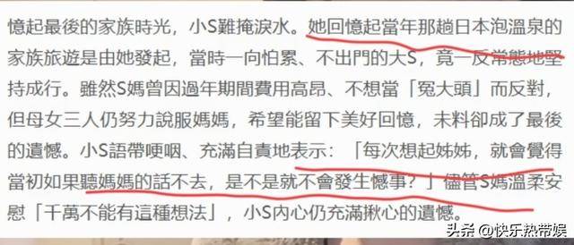 没想到却在旅游途中大s生病,一家人当时都慌了手脚,根本不知道应该怎么应对,就这样眼睁睁看着姐姐的生命流逝,对她来说真的很残忍。