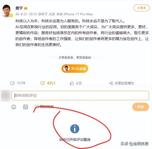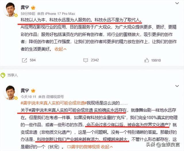 先说说龚宇这次最新的回应,字里行间都在强调“科技以人为本”,说AI进影视圈,是为了服务观众、服务创作者,还能降低演员的工作强度,把行业蛋糕做大。