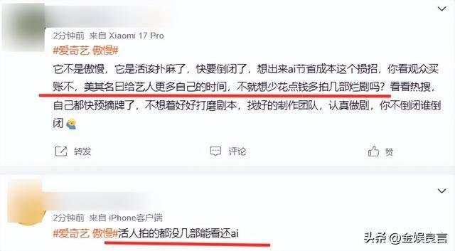 现在大家实在搞不懂爱奇艺的心思,放着好好的真人演员不用,非要死磕AI,他们总觉得观众想看AI剧,可实际上,观众想要的,从来都是有血有肉的角色,是演员用真心演绎的故事。