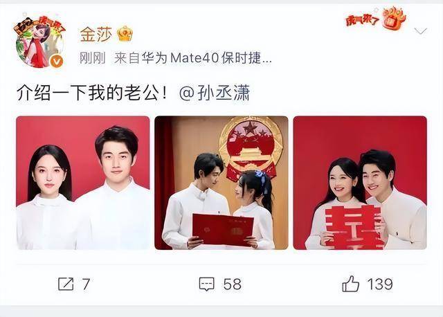4月9日,节目开播当天,金莎与孙丞潇在微博官宣领证结婚。