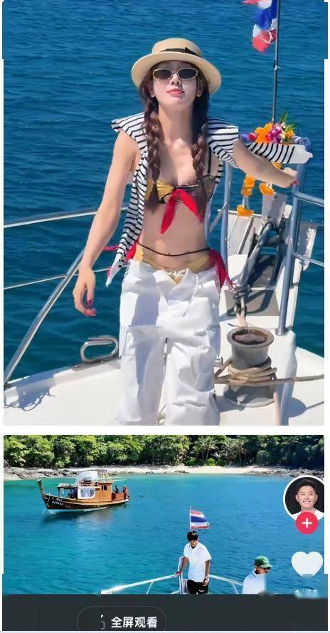买超旅行vlog的游轮背景、度假地点,与啵姐同期社交动态拍摄地完全一致,多次同游三亚、泰国,线下同行痕迹明显。