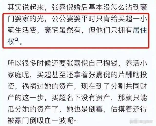 买超家族主营婚庆、高端会展事业,家底雄厚,婆家骨子里自带门第优越感,始终觉得演员出身的张嘉倪配不上自家。