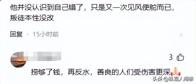 有网友吐槽,犯了那么大的错,连自己错在哪都不敢说,还好意思说悔改深刻,还要教年轻人做人,简直是滑天下之大稽。