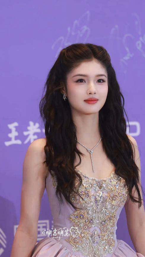 还有一次活动,她穿一身浅蓝色礼服,裙摆简约大方,搭配简单的珍珠配饰,没有多余的装饰,却把少女的温婉展现得淋漓尽致。