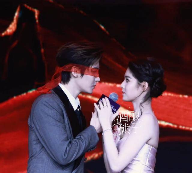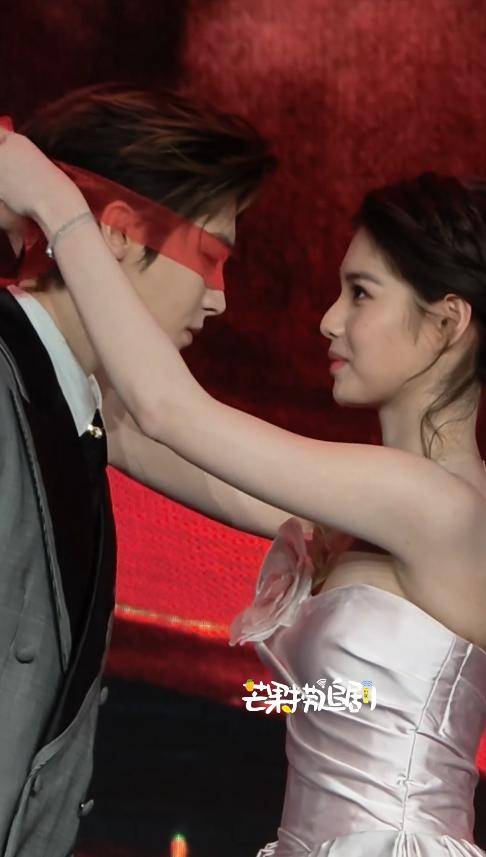 除了贴脸拉手,两人还一起还原了剧中经典的红绸蒙眼名场面。