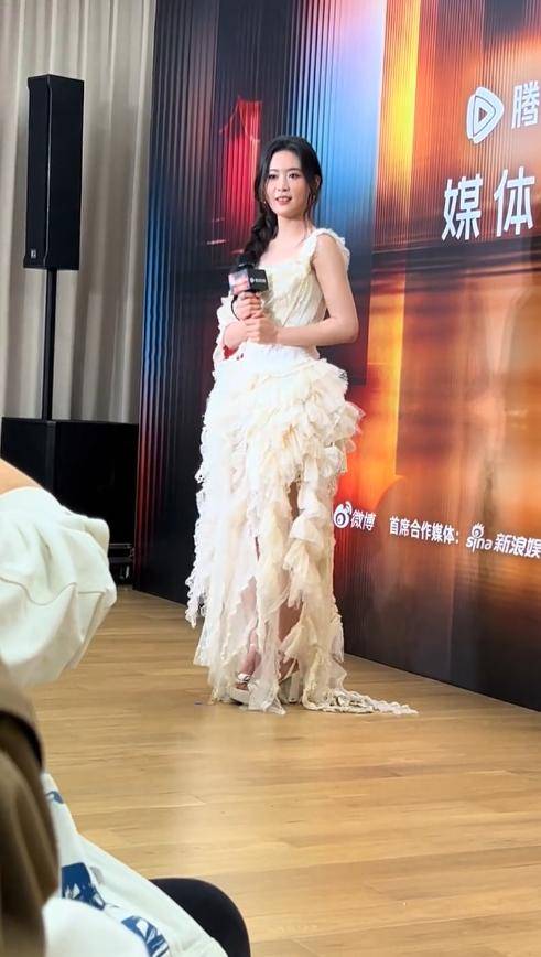 以往荧幕里精致亮眼的她,本次造型十分邋遢。她身着宽松白色长裙,版型松散无修饰。面料柔软贴身,整体毫无线条感。