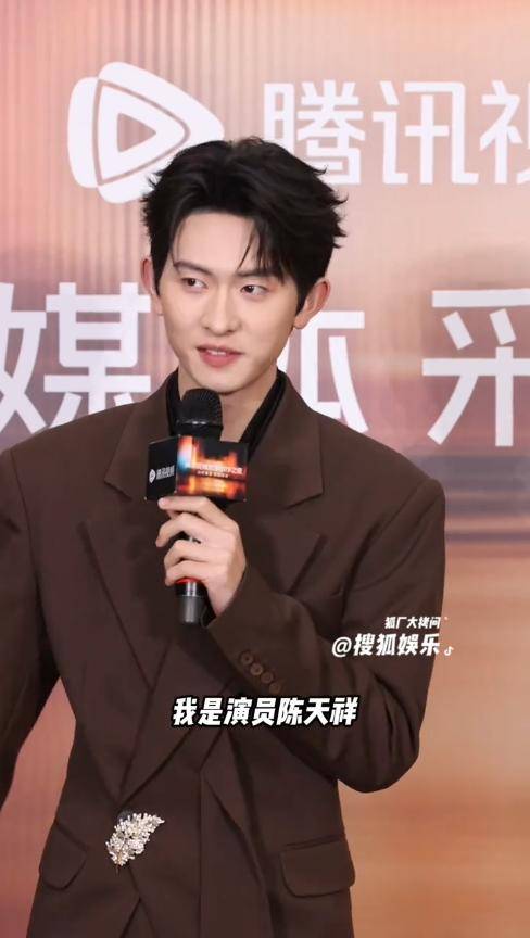 陈添祥的发型是利落的短发,梳得整齐有序,没有一丝凌乱,眉眼间依旧带着古装里的少年气,只是少了古装的飘逸,多了几分现代男士的沉稳。