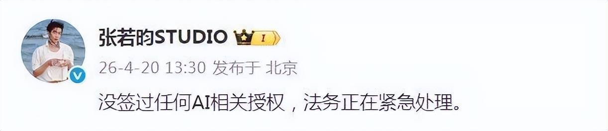 随着争议迅速发酵,多位知名艺人如张若昀、于和伟、王楚然、李一桐、陈哲远等纷纷紧急辟谣,他们明确表示未签署任何AI相关授权,工作室已启动法务程序。