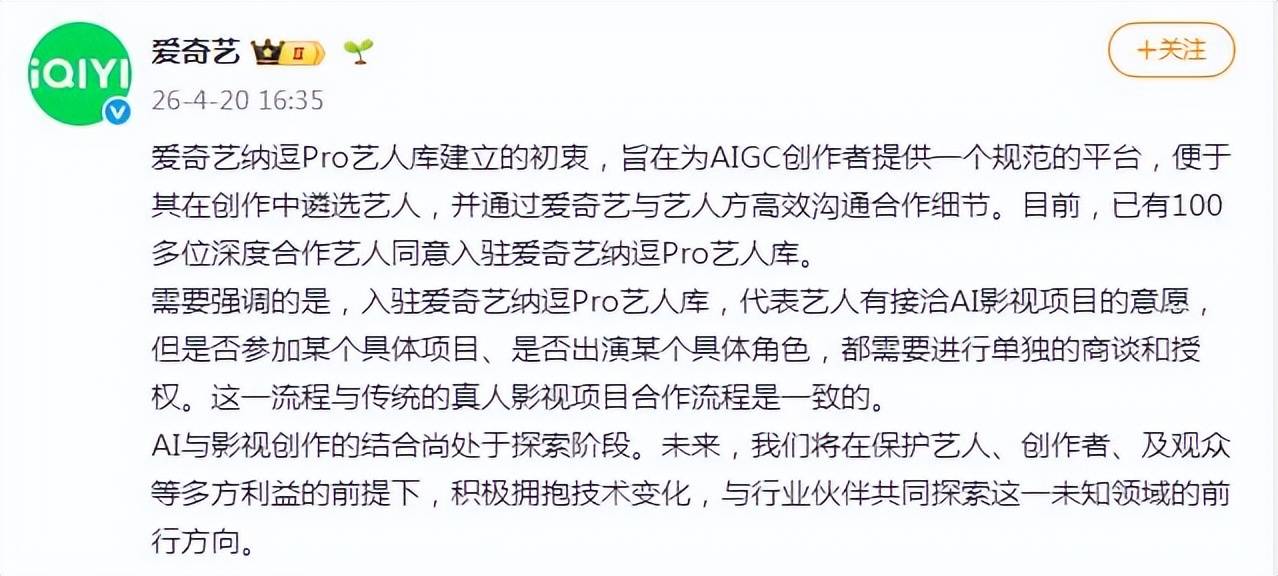 他们计划引入超百位艺人,用于AI影视创作,再加上爱奇艺股票大跌,引发了巨大的争议。