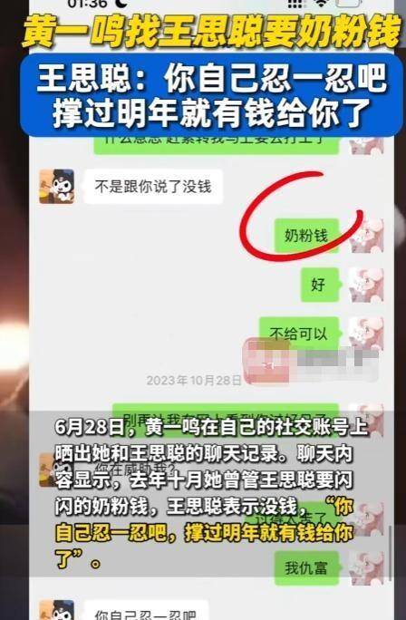 黄一鸣的女儿闪闪在2023年6月出生,孩子出生后,王思聪就再没出现过,也没承认这个孩子,他们之间唯一一次金钱往来是2022年的一笔5万元转账,备注写着“打车费”,转完钱黄一鸣就被拉黑了。