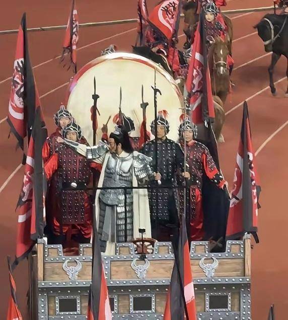 4月20号在宿迁办苏超联赛,何润东穿着《楚汉传奇》里的那身战甲出场,他手里拿着长戟,站得笔直,没有骑马,现场人很多,直播一发出去,网上就炸开锅了,有人直接说霸王没马这算哪门子霸王,还有人做视频标题就写敷衍和没气势,转发量很高。