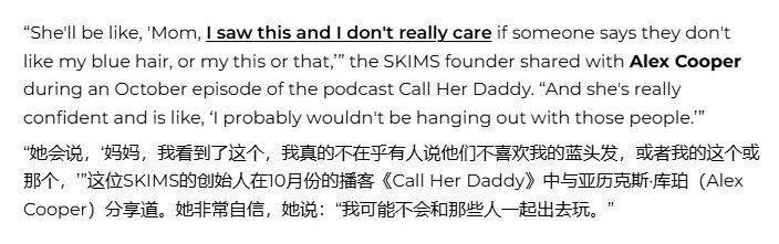 “有一天我想拥有Yeezy和SKIMS,成为像妈妈一样的business owner(企业主)。还说想尽快开始自己的事业。