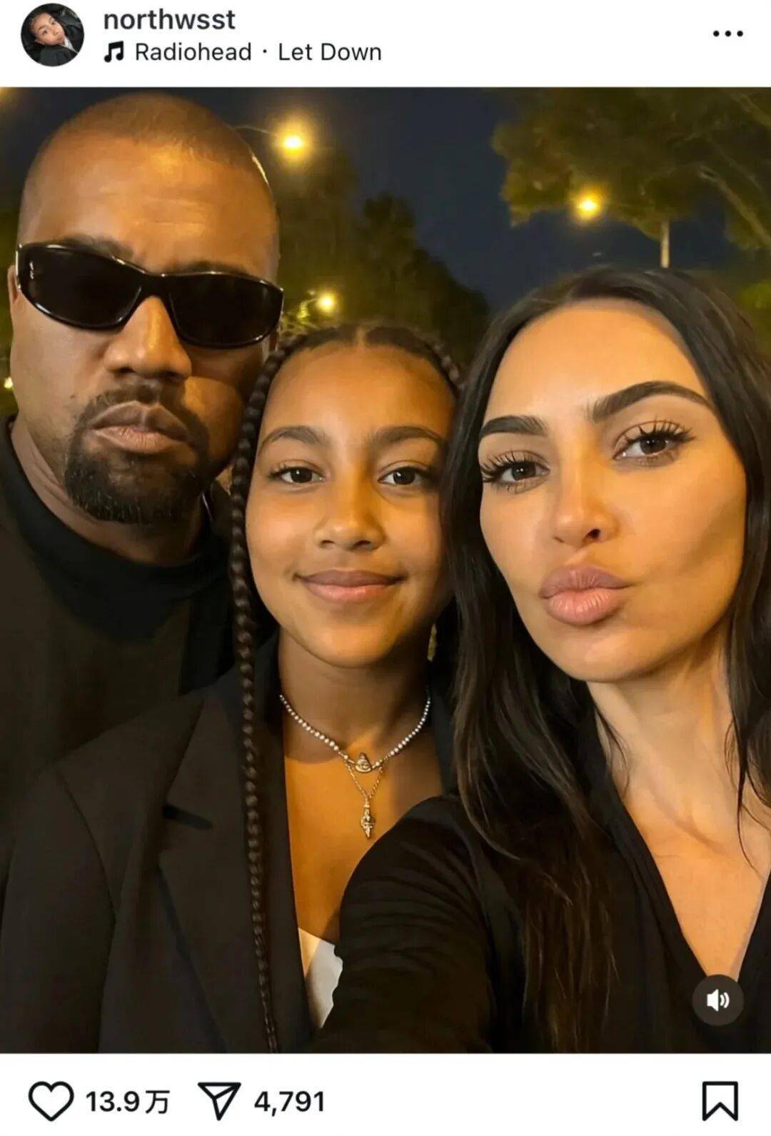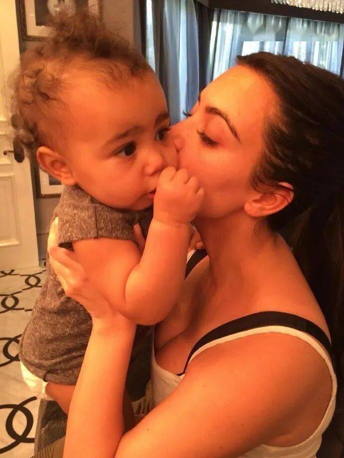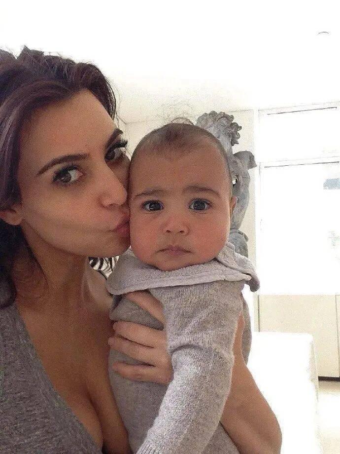 只露出眼睛,谁能分清这是12岁的小西北,还是47岁的卡戴珊。