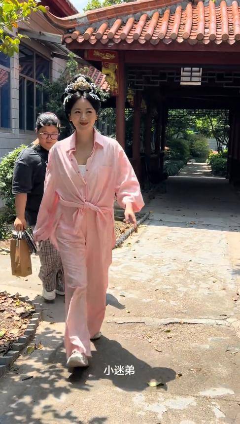 从网友拍到的视频来看,小李琳当天穿着古装戏服,头上戴着精致的古装发饰,乌黑的长发挽起,露出光洁的额头。